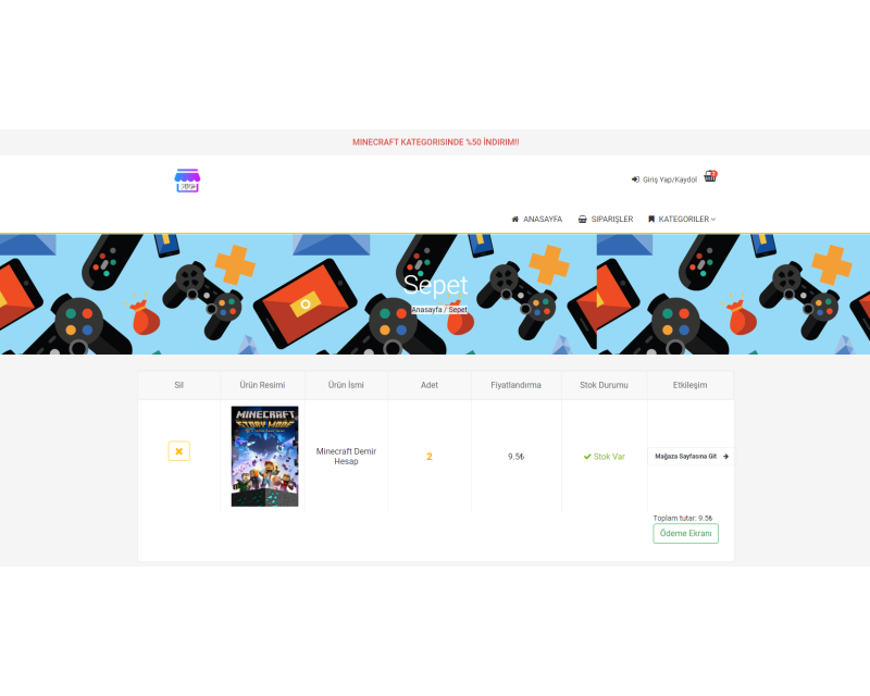 Giriş yapmadan sepete eklenen ürünler daha sonrasında kayıt olunursa veya giriş yapılırsa o hesaba aktarılır.