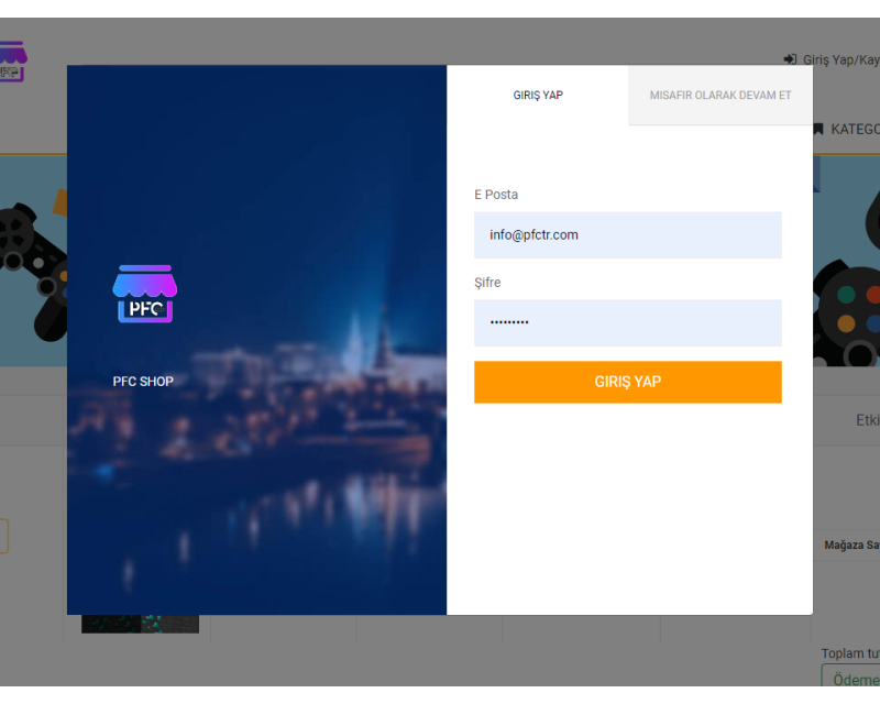 Üyelikli veya üyeliksiz sipariş geçebilme