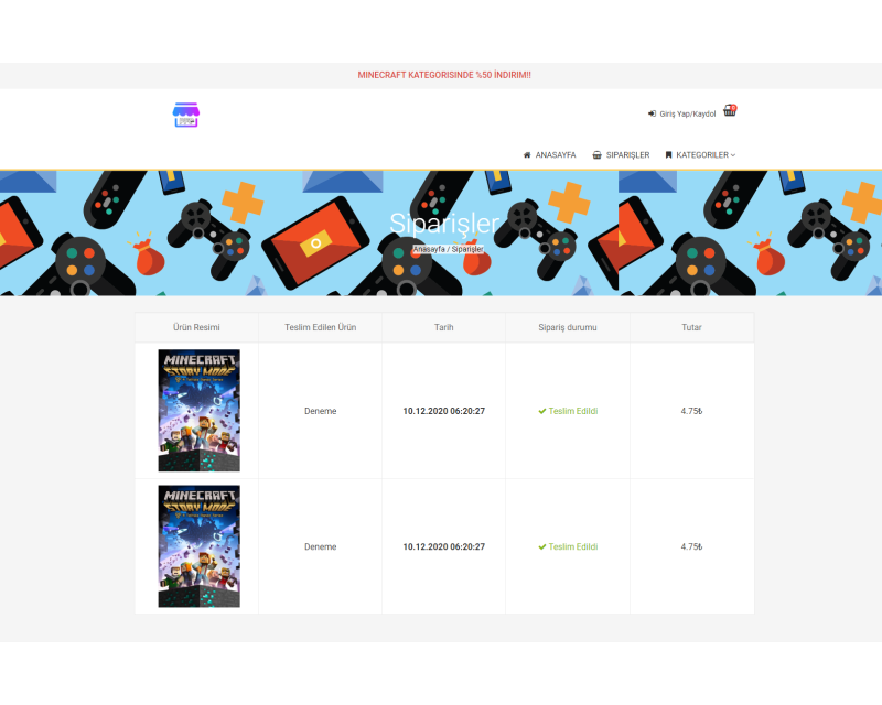 Ürünlerinizi mail yoluyla veya site içi siparişler kısmı ile görüntüleyebilme