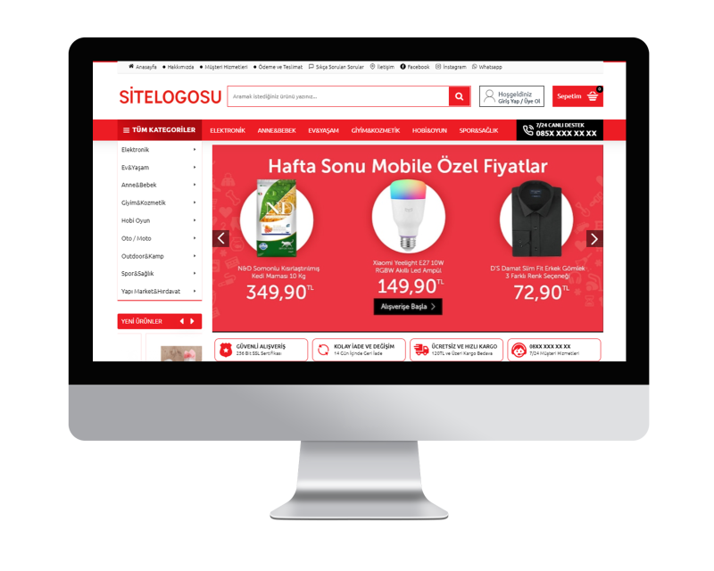 Sizin için hazırladığımız hazır e-ticaret tasarımlarından birini seçerek sanal mağazanızı dilediğiniz gibi düzenleyebilirsiniz.