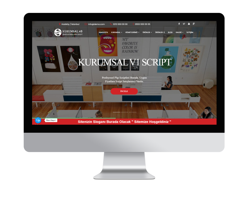 Arkaplan rengini, slider görselini ve içerik renklerini ayarlayabildiğiniz ekstra slider sistemi. Sitenizin alt kısımlarında yer almaktadır