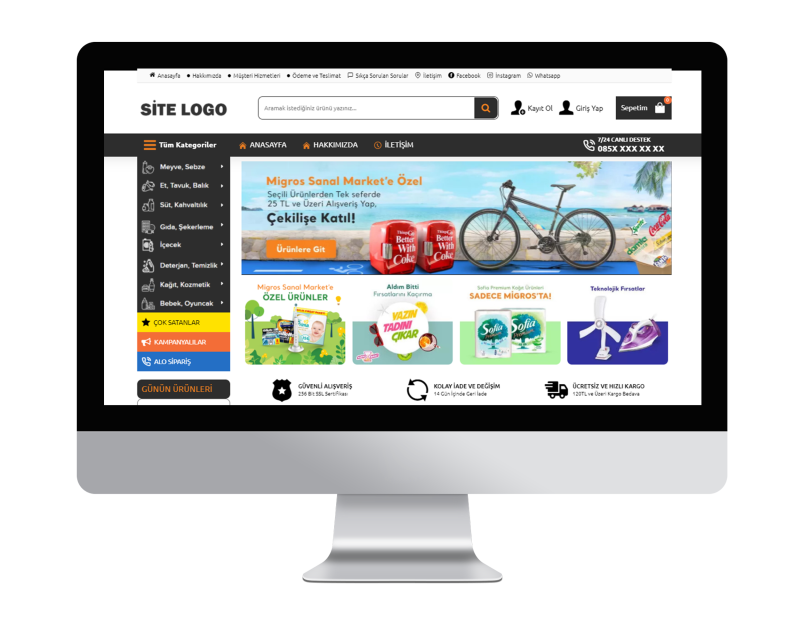 Sizin için hazırladığımız hazır e-ticaret tasarımlarından birini seçerek sanal mağazanızı dilediğiniz gibi düzenleyebilirsiniz.
